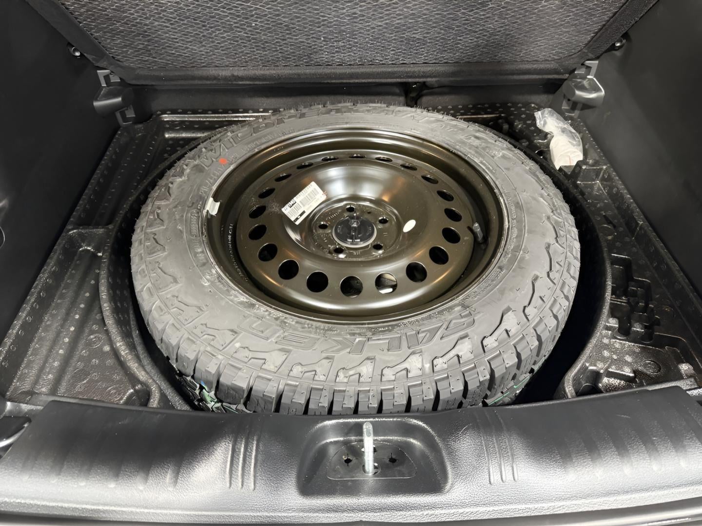 - Spare tire location Spare tire mounted under the cargo floor