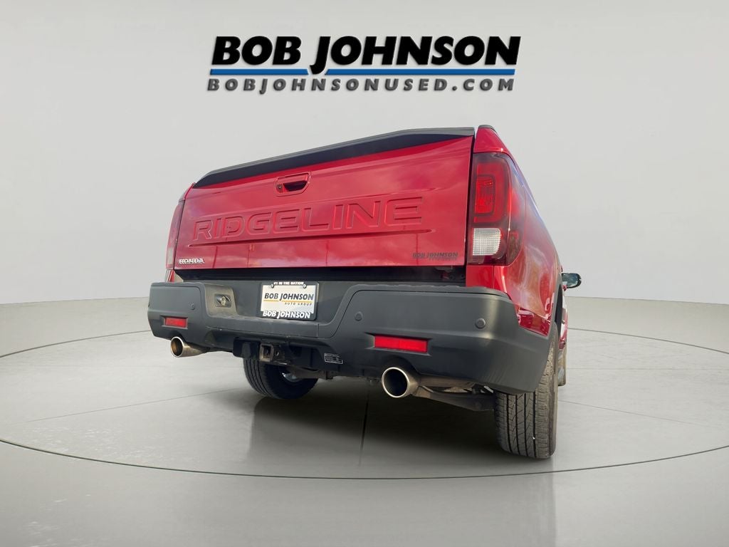 Balance Of Factory Warranty Remaining!, Black Leather, Alloy wheels, Bluetooth® Hands-Free Link, Exterior Parking Camera Rear, Honda Satellite-Linked Navigation System, Memory seat, Navigation system: Honda Satellite-Linked Navigation System, Power driver seat, Power windows, Remote keyless entry, Steering wheel mounted audio controls. Odometer is 3741 miles below market average! 2025 Honda Ridgeline Black Edition Red